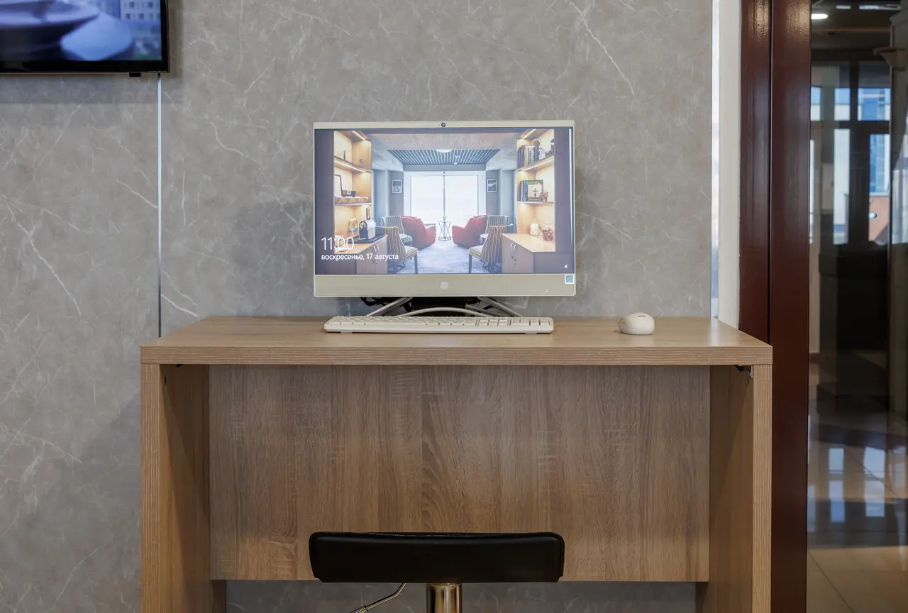 At AZIMUT Hotel Kemerovo, we've created a cozy business corner where you can comfortably handle your business needs. The space is equipped with modern technology—everything is designed for your productive work.