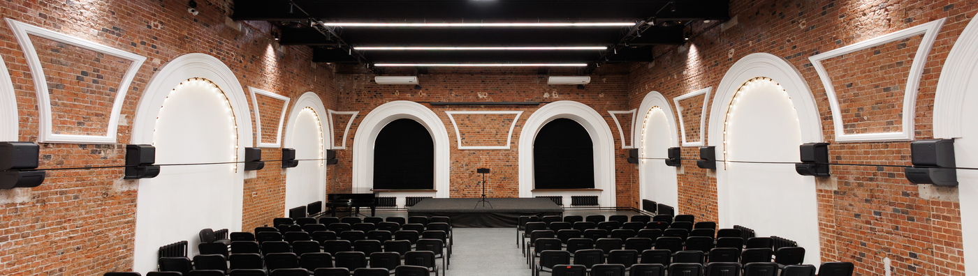 The conference hall "Morozoff Hall" is located in the heart of Orekhovo-Zuyevo, on the picturesque embankment of the Klyazma River. A spacious loft with an area of 276 m² is located within the walls of the former Morozov factory, preserving the history of the legendary dynasty of industrialists.
