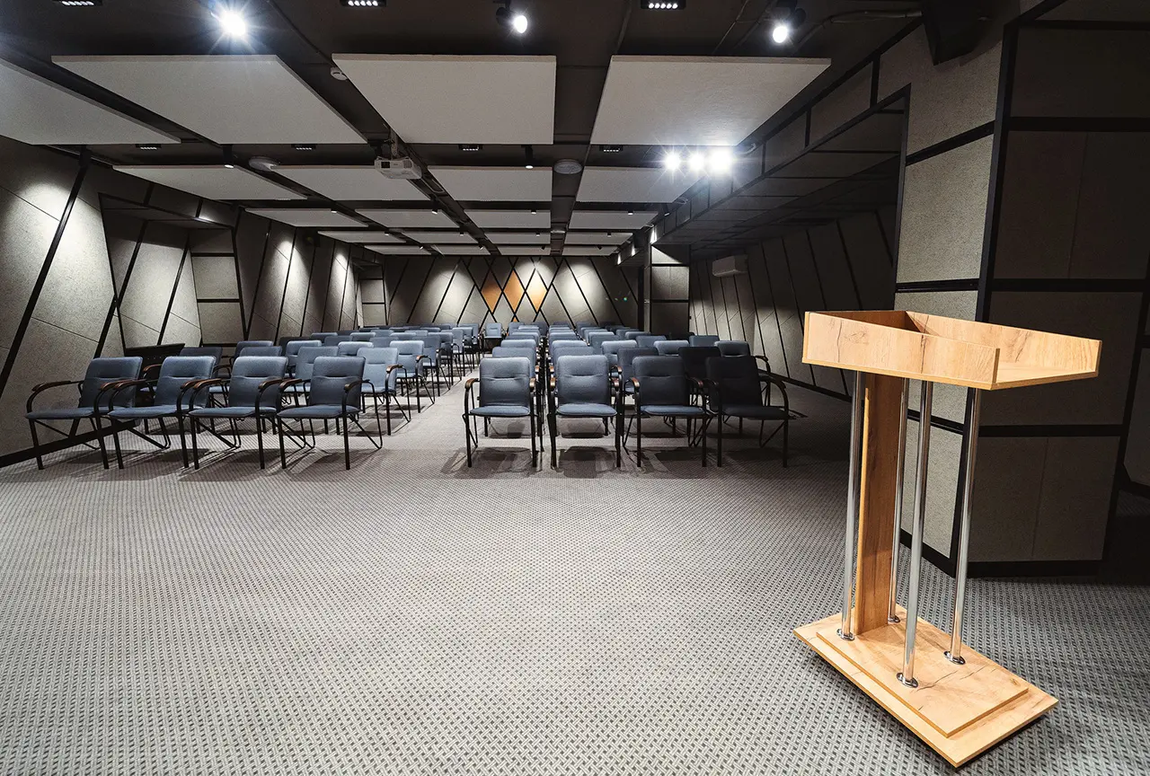- Modern equipment: the hall is equipped with all the necessary equipment for successful events. You will have a large screen, a powerful projector and high-speed Wi-Fi at your disposal.