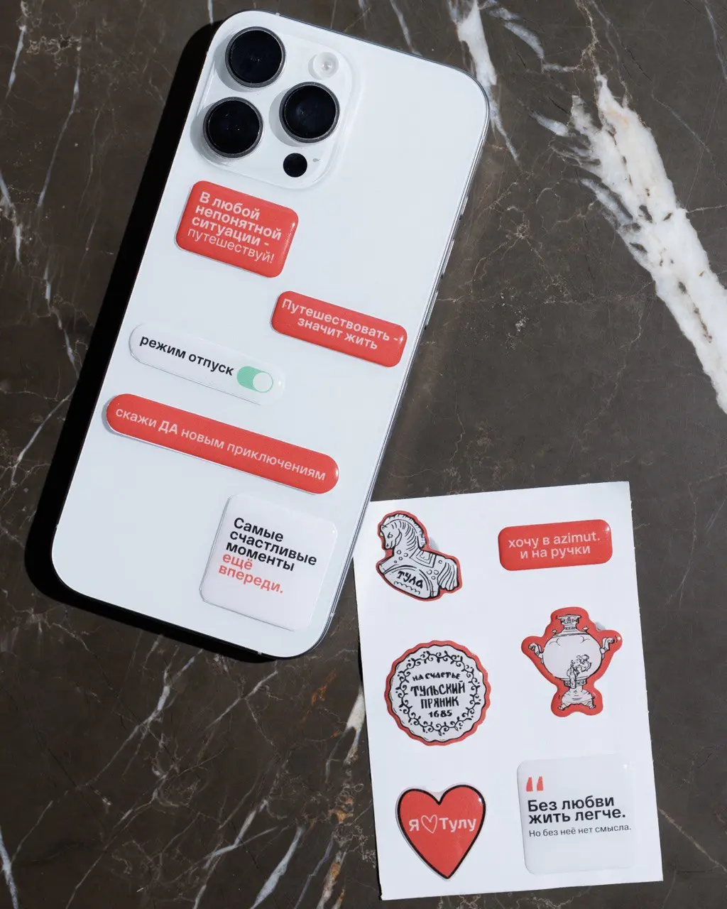 Bright branded stickers from the AZIMUT City Hotel Tula are a stylish way to personalize your phone, laptop, or suitcase. They will serve as a small reminder of your trip and add a touch of fun to your everyday items. Made of durable, wear-resistant material, the stickers retain their appearance for a long time.