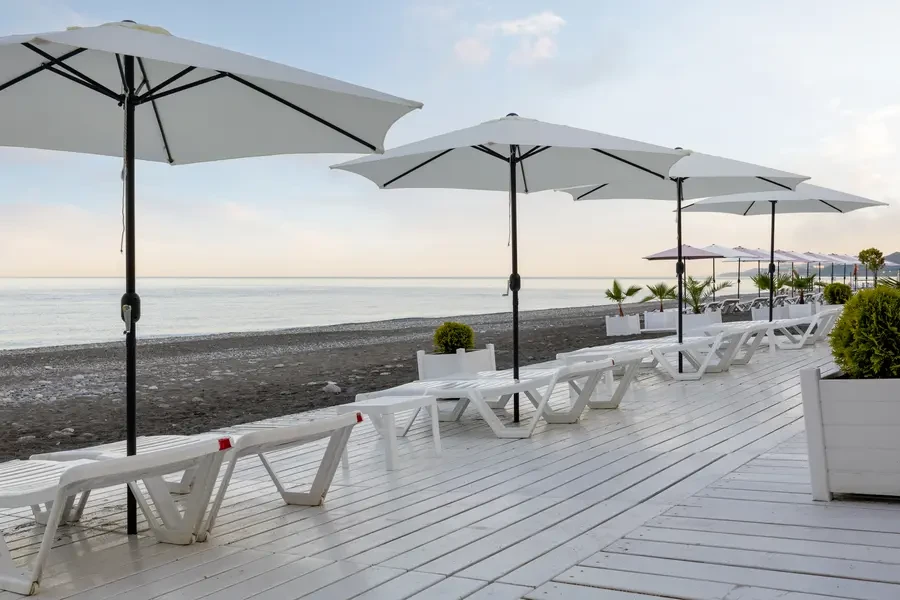 In addition, there is a cafe-bar on the beach offering fast food and drinks, and a cafe with a full menu of Caucasian and European cuisine.