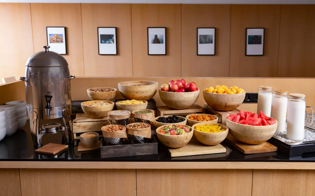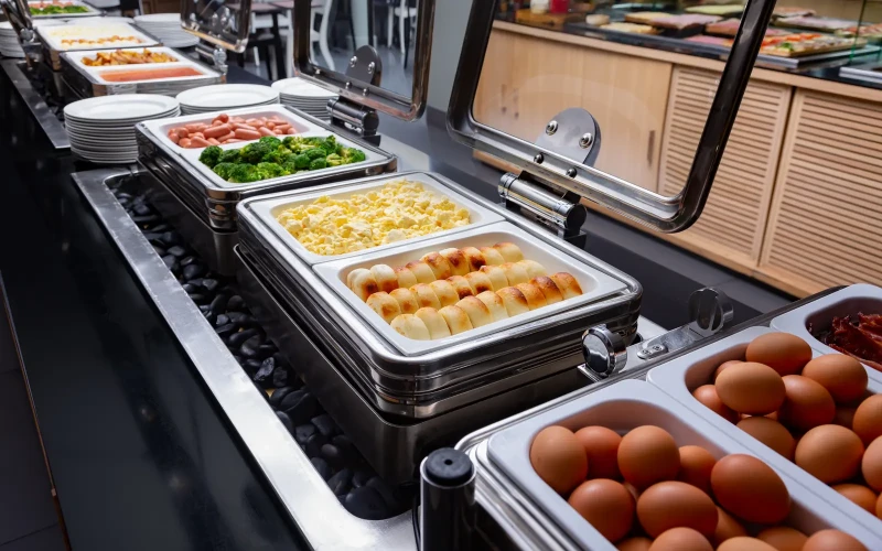 Банкетное обслуживание: 8 вариантов кофе-брейков, варианты бизнес-ланча сет-меню и шведский стол, варианты ужина сет-меню и шведский стол, 7 видов банкетного меню